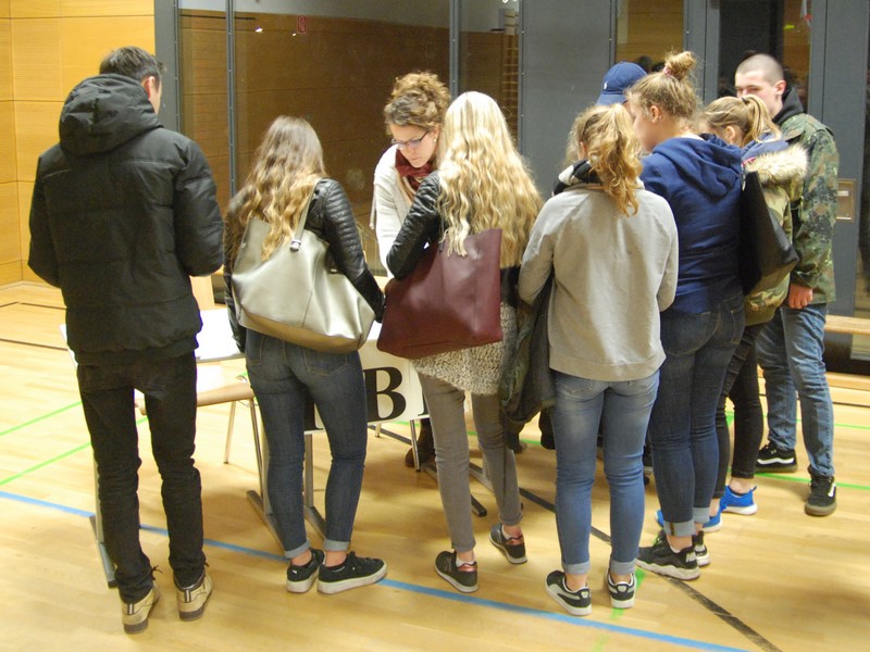Nachdem Fragen im Plenum gestellt und beantwortet worden waren, konnten sich die Schülerinnen und Schüler im Anschluss in Einzelgesprächen von den anwesenden Schulvertretern beraten lassen.