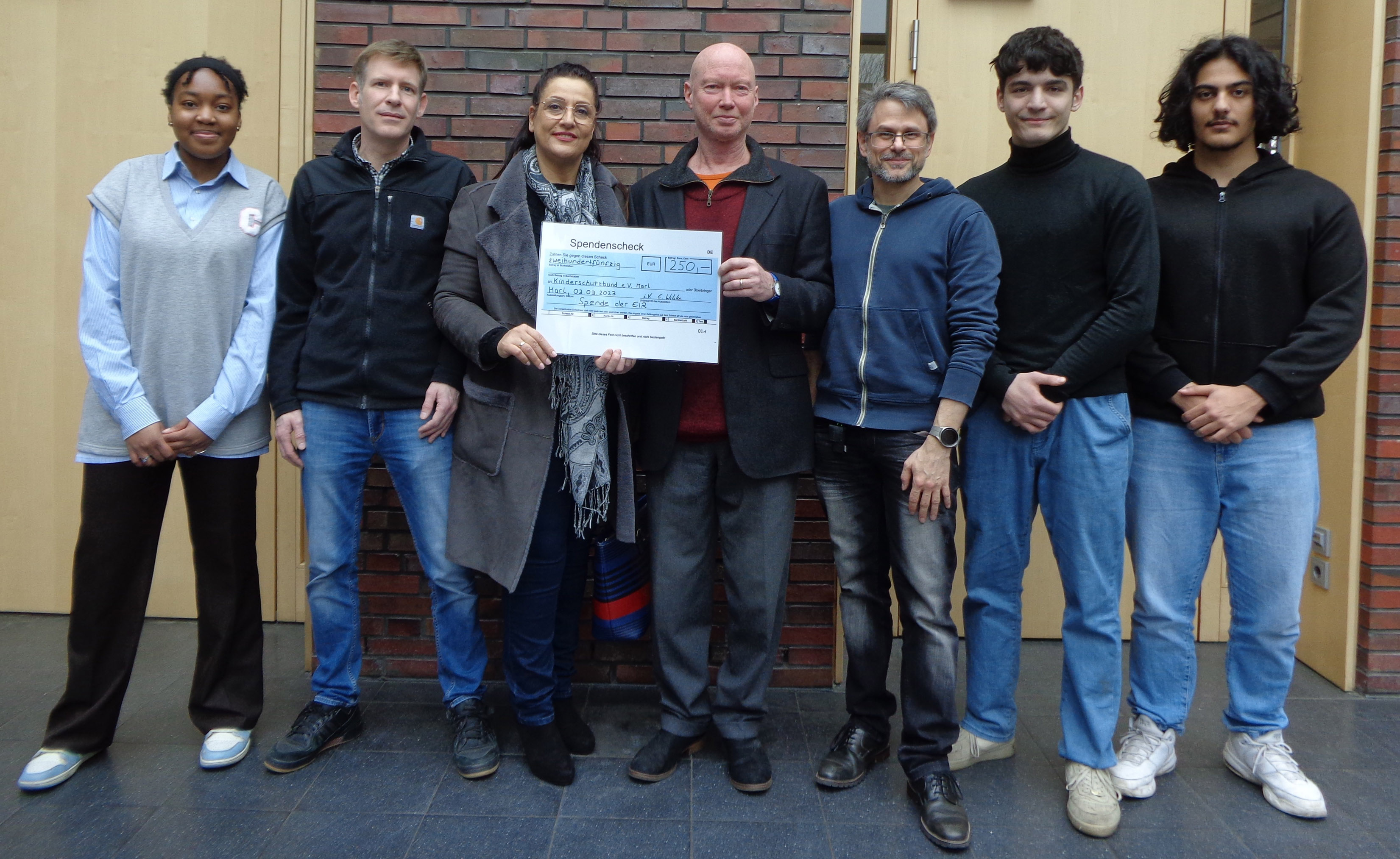 Auf dem Basar des Tages der offenen Tür an der Ernst-Immel-Realschule Ende des letzten Jahres, wurde vom Elternverein mit Unterstützung der SV, ein vielfältiges Angebot dargeboten. Aus dem Erlös wurde nun eine Spende in Höhe von 250 Euro an den Kinderschutzbund Marl übergeben.