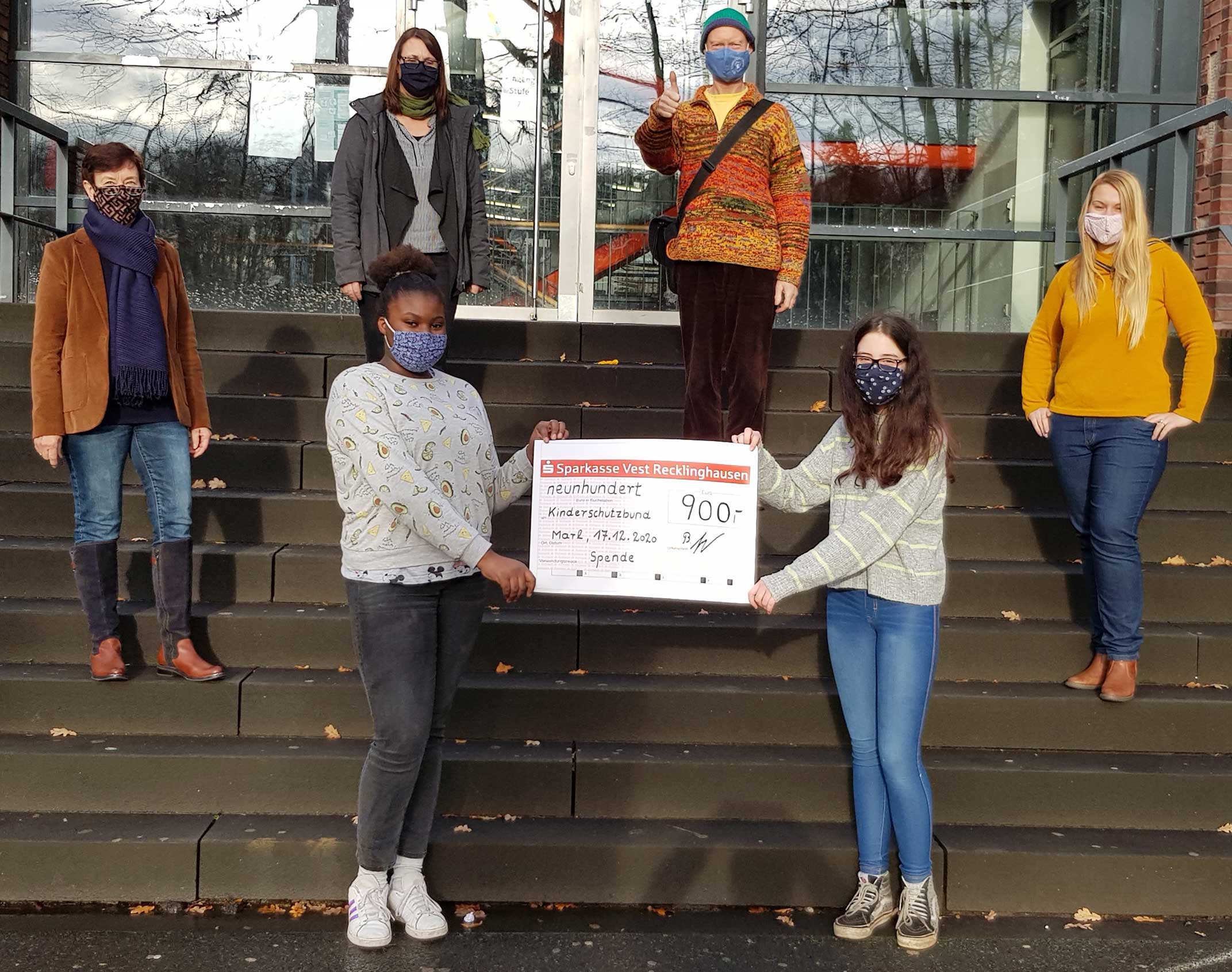Besonders in Zeiten von Corona ist Solidarität gefragt. Die Ernst-Immel-Realschule hat bisher den Erlös des jährlichen Weihnachtsbasars an den Kinderschutzbund gespendet. Da aufgrund des Pandemie-Geschehens der Tag der offenen Schultür und somit auch der Weihnachtsbasar ausfallen mussten, sammelte die Marler Realschule Spenden von den Schülerinnen und Schülern für den Marler Kinderschutzbund, um die Tradition trotzdem weiterzuführen. Die Spendenaktion ergab eine Summe von 900€, die jetzt dem Marler Kinderschutzbund übergeben werden konnte.